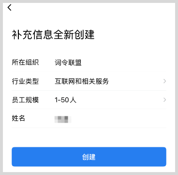 4、任意输入所在组织名称、任意选择其他信息后完成创建。