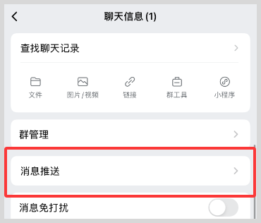 6、进入全员群后,点击右上角“...”后,找到消息推送并点击进入。